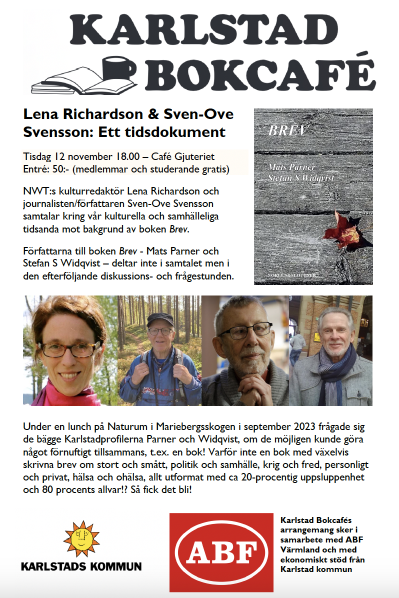 Entré: 50 kr. (Medlemmar i Karlstad Bokcafé och studerande gratis)