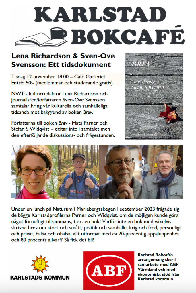 NWT:s kulturredaktör Lena Richardson och journalisten/författaren Sven-Ove Svensson samtalar kring vår kulturella och samhälleliga tidsanda mot bakgrund av boken Brev.