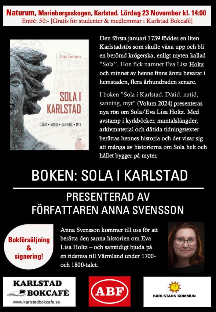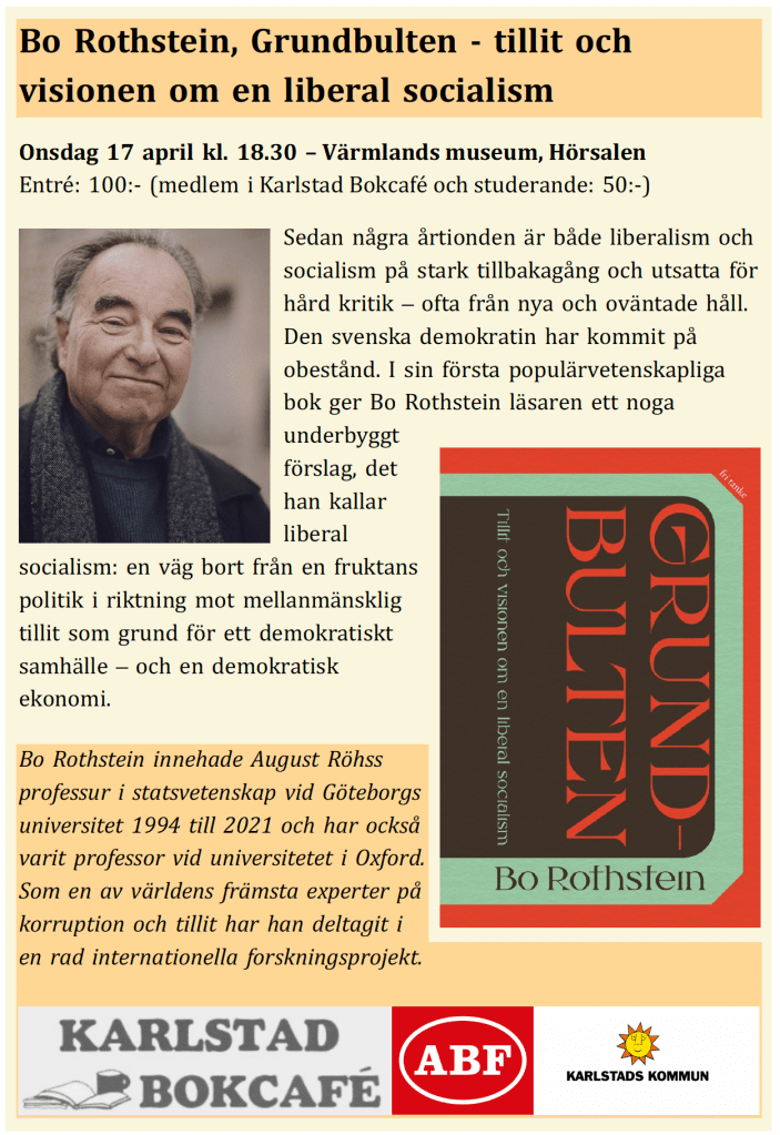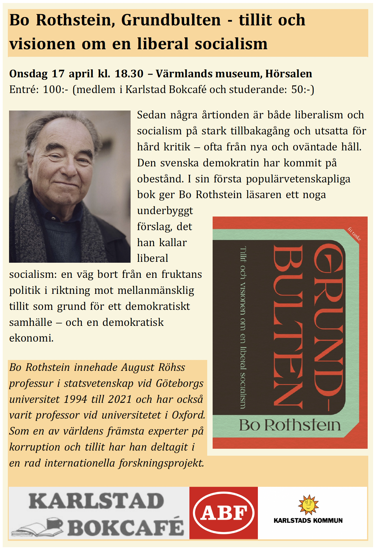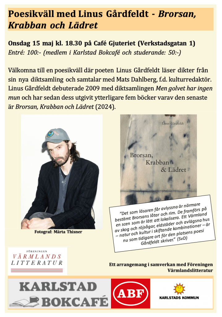 Entré: 50 kr. (Medlemmar i Karlstad Bokcafé och studerande gratis)